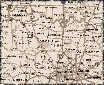 south of Wichita Falls, Texas, and about an hour and a half from the